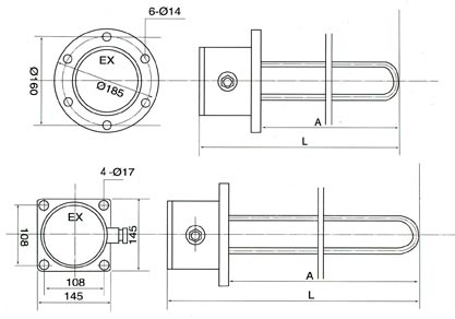 該加熱器為防爆加熱器,聯接法蘭采用圓法蘭和方法蘭的形式(方法蘭在型號后面加F),選定電壓可220V或380V,并可在接線腔內安裝溫度控制器。質量較為穩(wěn)定。